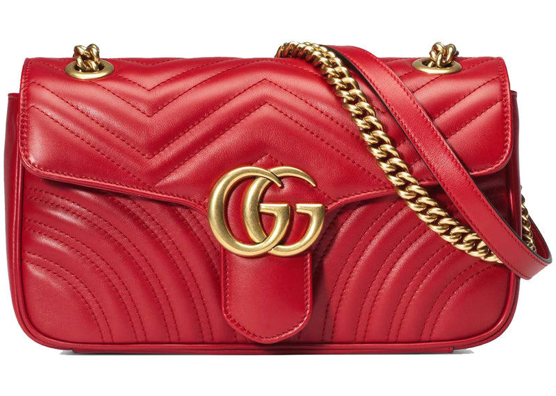 The Gucci GG Marmont Small Matelasse Bag Hibiscus Red is now available at Side Kicks!