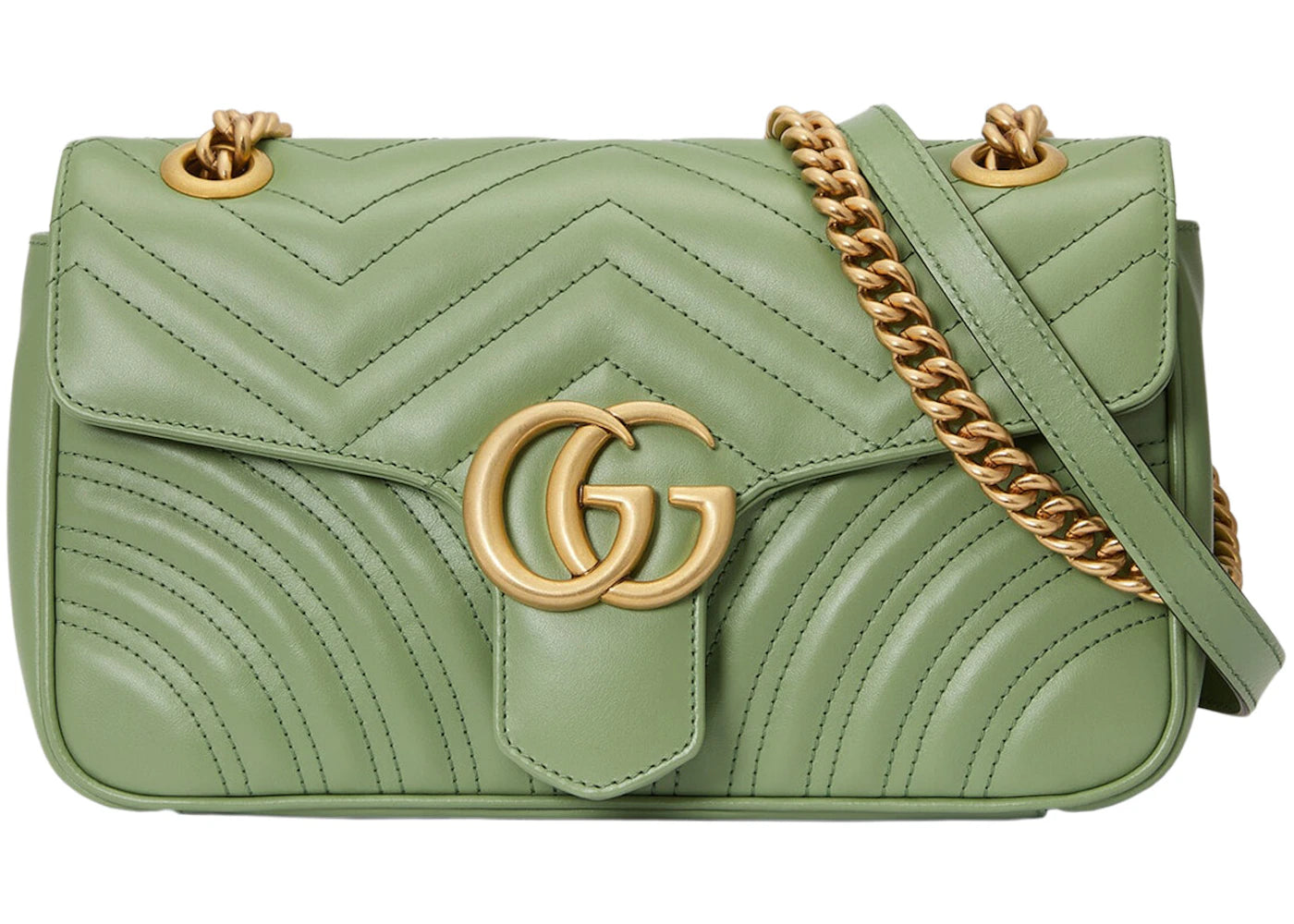 Gucci GG Marmont Small Shoulder Bag Matelasse Chevron Sage Green