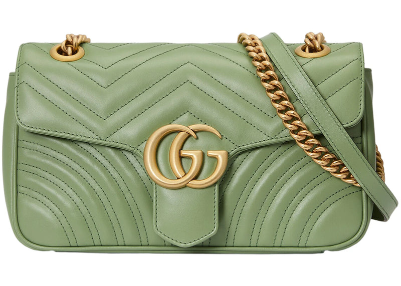 The Gucci GG Marmont Small Shoulder Bag Matelasse Chevron Sage Green is now available at Side Kicks!