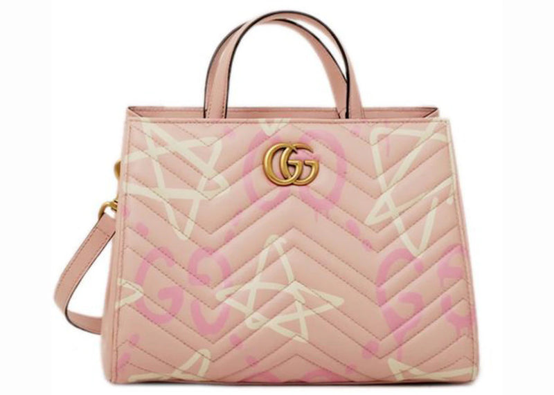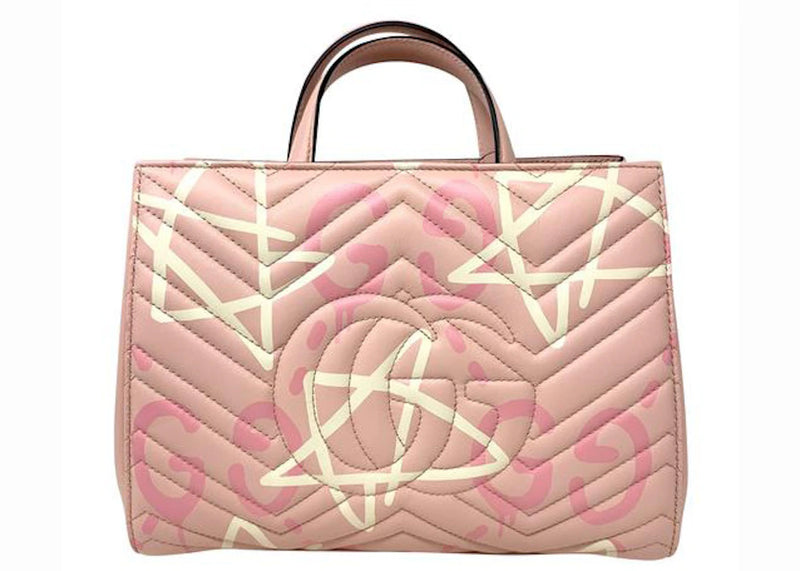 The Gucci GG Marmont Top Handle Matelasse GucciGhost Small Pink/White is now available at Side Kicks!