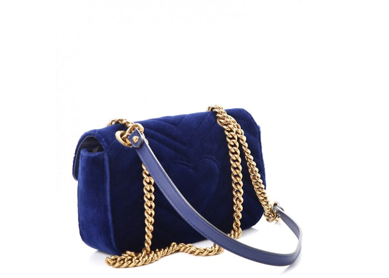 The Gucci GG Marmont Velvet Matelasse Mini Cobalt Blue is now available at Side Kicks!