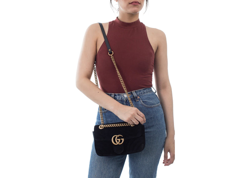 Gucci GG Marmont Velvet Matelasse Velvet Mini Black