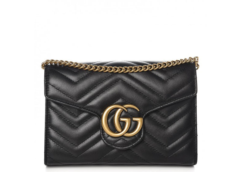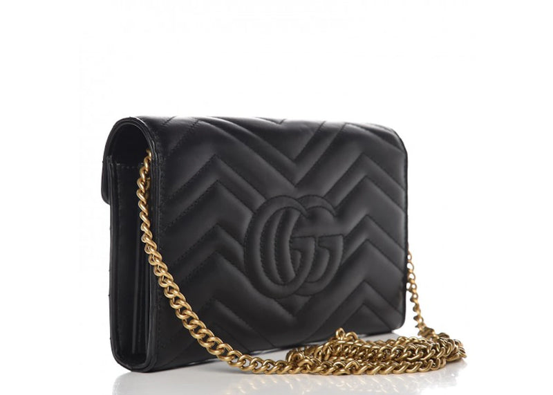 Gucci GG Marmont Wallet on Chain Matelasse Black