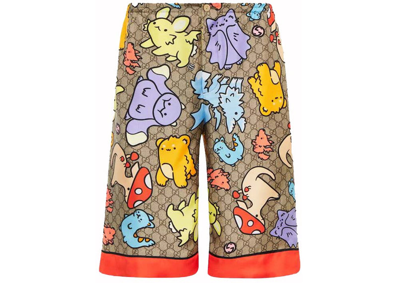 The Gucci GG Print Silk Twill Shorts Beige Multi is now available at Side Kicks!