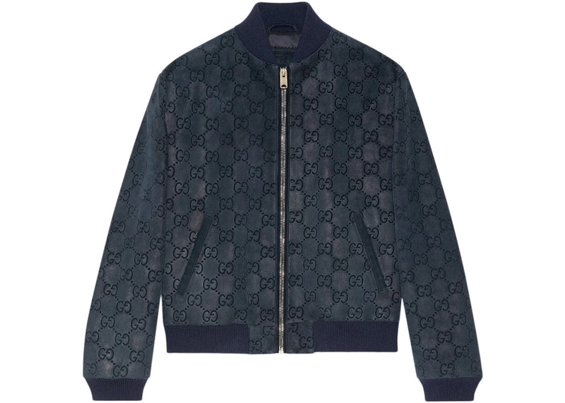 The Gucci GG Printed Suede Bomber Jacket Navy is now available at Side Kicks!