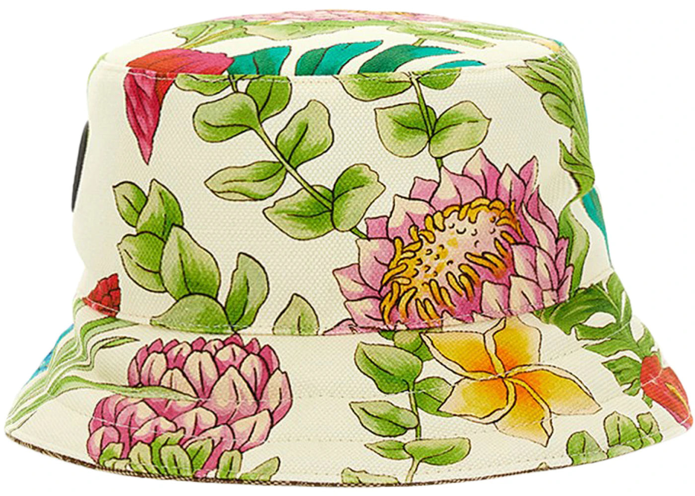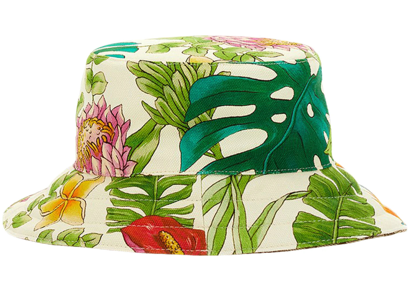 Gucci GG Supreme Reversible Bucket Hat Floral Multi / Beige