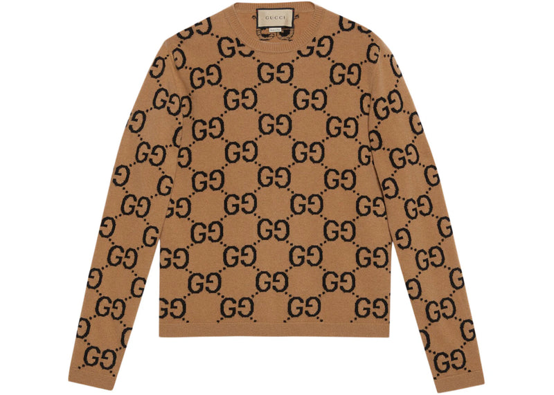 The Gucci GG Wool Jacquard Crewneck Jumper Camel/Black is now available at Side Kicks!