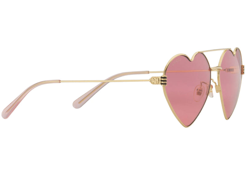 The Gucci Heart-Frame Sunglasses Gold-toned Metal/Red Lens (733341 I3330 8066) is now available at Side Kicks!