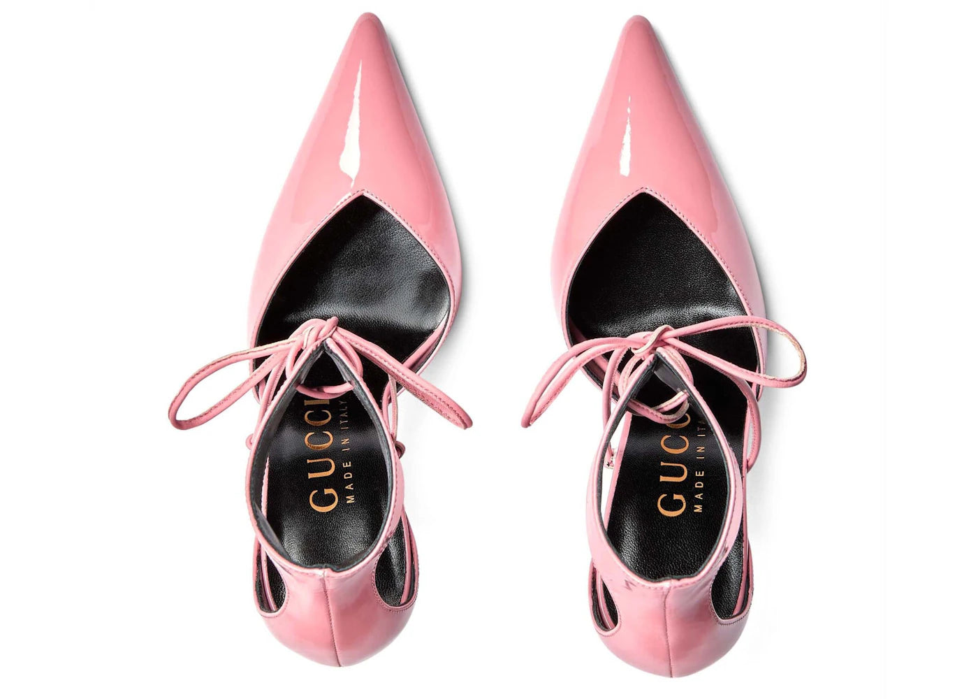 The Gucci High Heel Pump Patent Leather with Ankle Cuff Pink (Women's) is now available at Side Kicks!