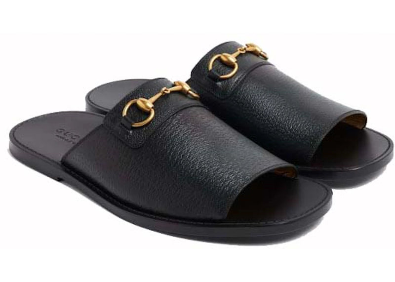 The Gucci Horsebit Leather Flat Slides Black is now available at Side Kicks!