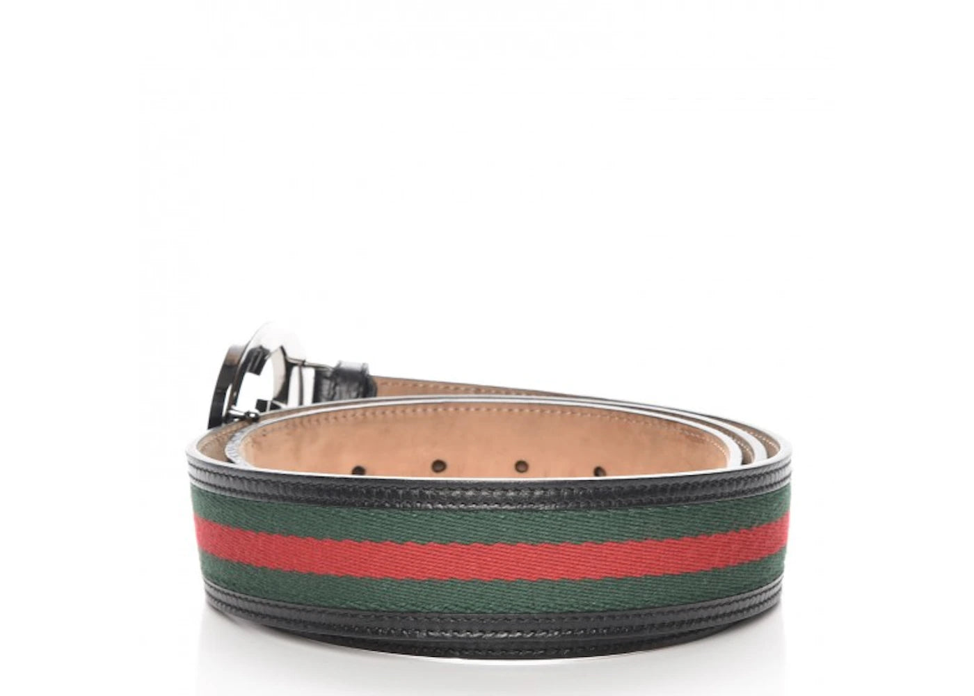 The Gucci Interlocking G Belt Monogram Web Black/Green/Red is now available at Side Kicks!