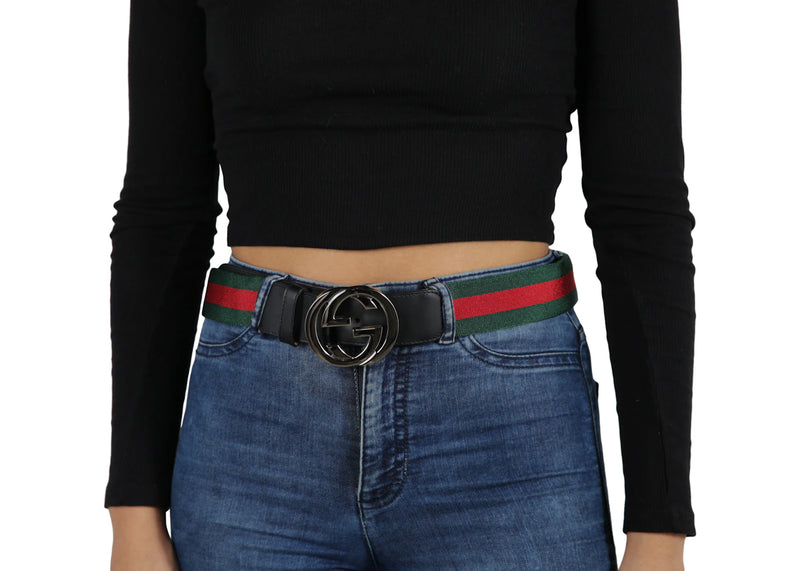 The Gucci Interlocking G Pure Web Belt Green/Red/Black is now available at Side Kicks!