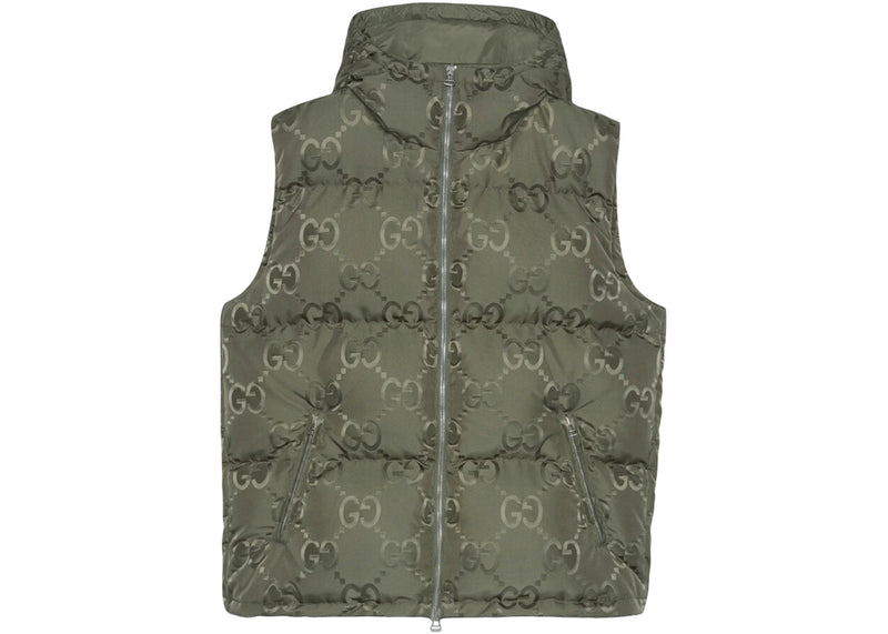 The Gucci Jumbo GG Canvas Down Gilet Green is now available at Side Kicks!