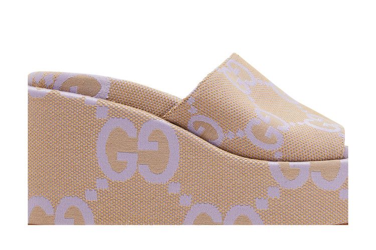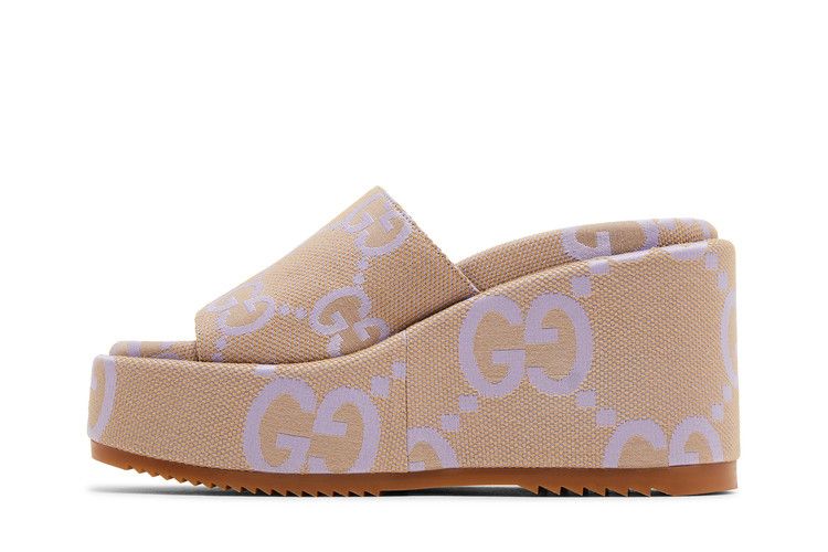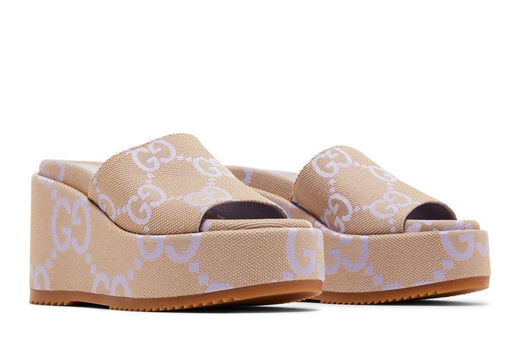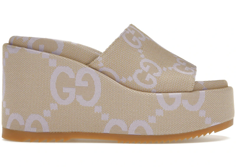 Gucci Jumbo GG Platform Slide Sandal Beige Light Blue Canvas