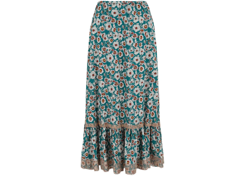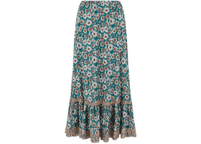 The Gucci Lace-Trimmed Floral Maxi Skirt Blue is now available at Side Kicks!