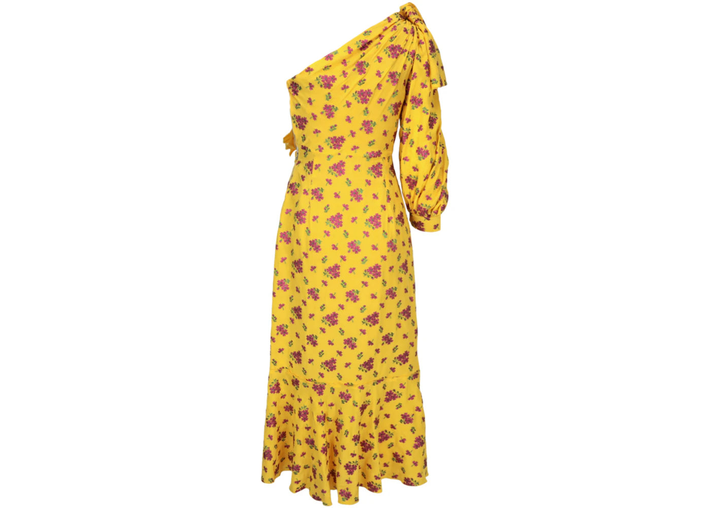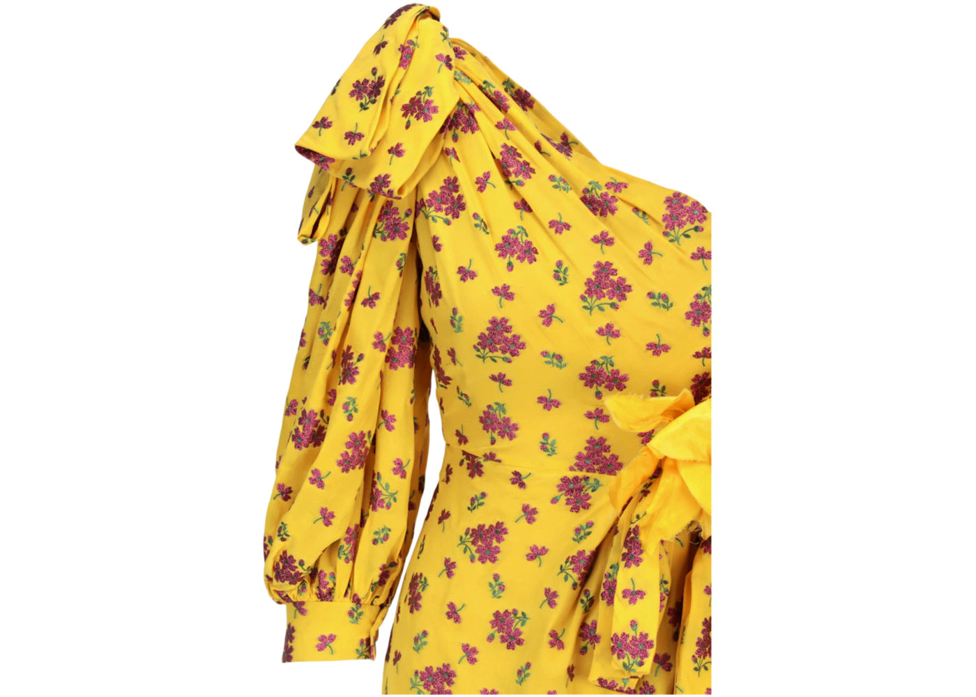 The Gucci Little Flower Georgette One-Shoulder Dress Lemon Azalea Nude is now available at Side Kicks!