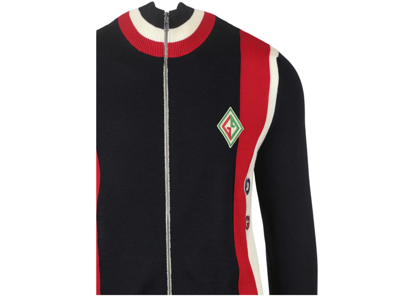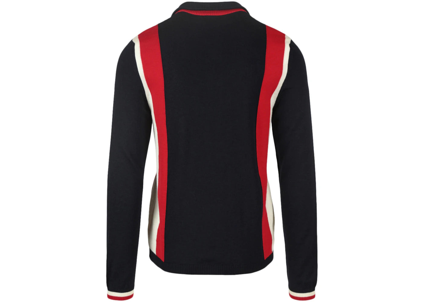 The Gucci Logo-Appliqued Striped Wool Sweater Indigo is now available at Side Kicks!