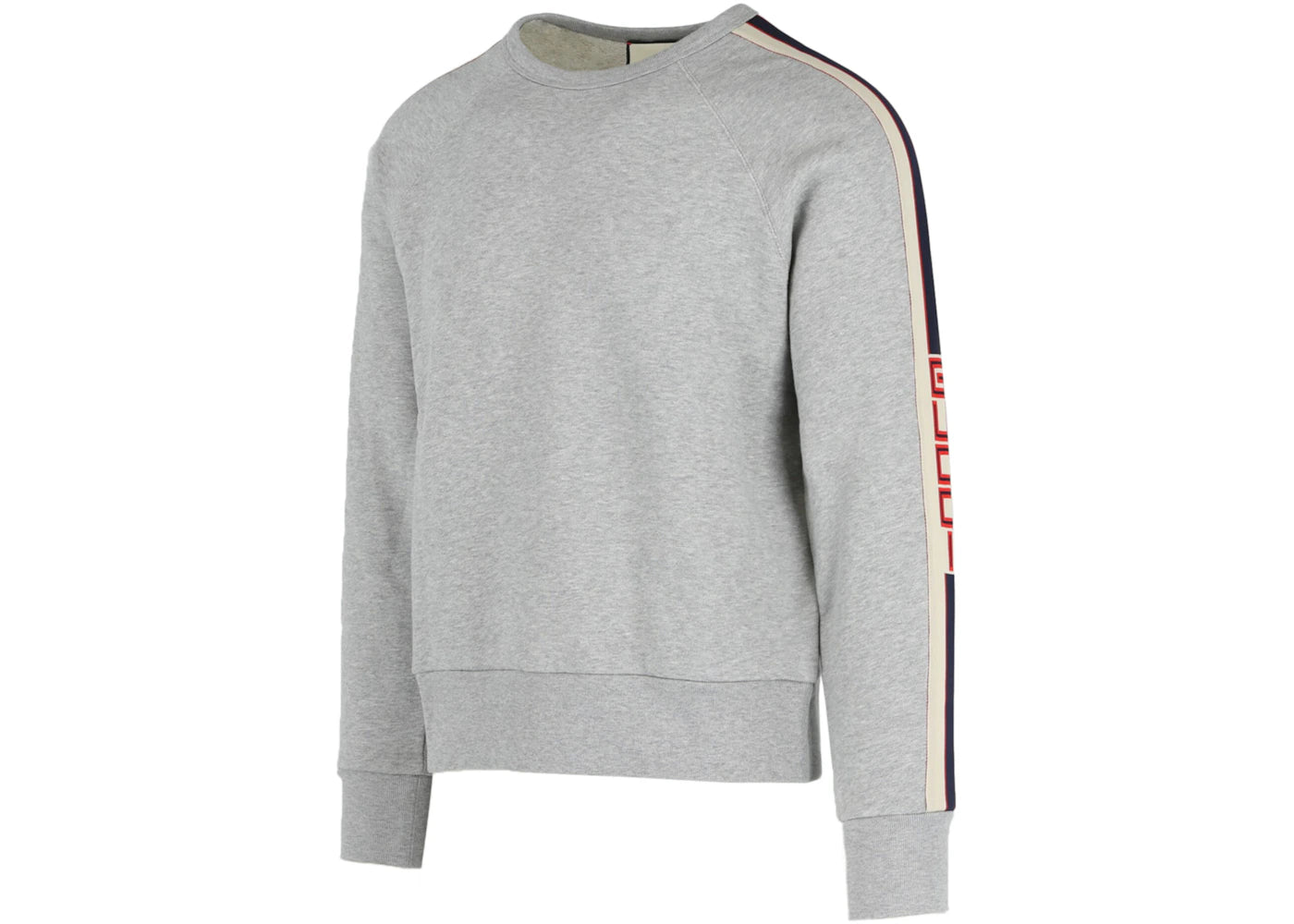 The Gucci Logo Crewneck Sweatshirt Medium Grey/Milk Red is now available at Side Kicks!