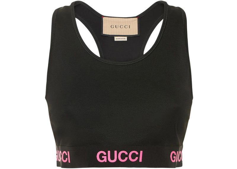 The Gucci Logo Jacquard Crop Top Black Pink is now available at Side Kicks!