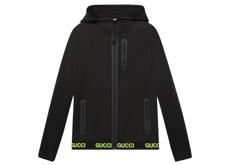 The Gucci Logo-Print Hooded Technical Jacket Black Yellow is now available at Side Kicks!