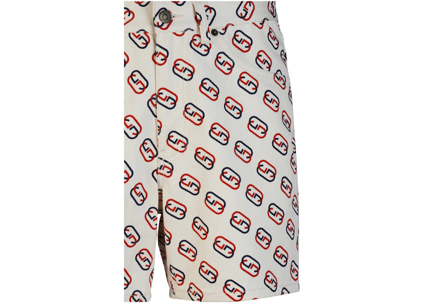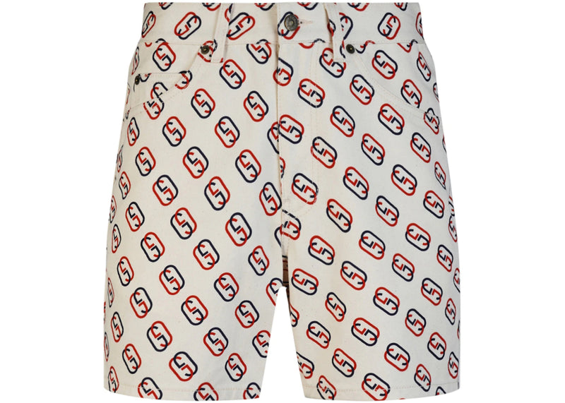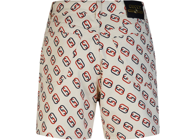 The Gucci Logo Print Twil Shorts Ivory Print is now available at Side Kicks!