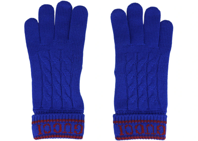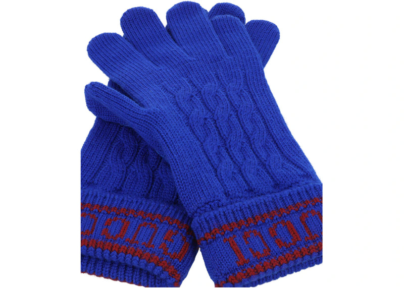 The Gucci Logo Wool Gloves Medium Blue is now available at Side Kicks!