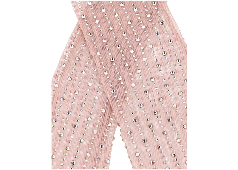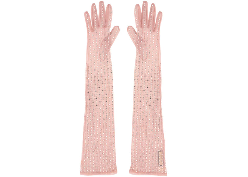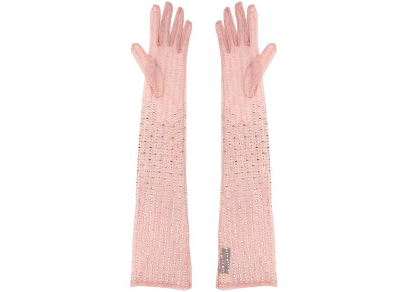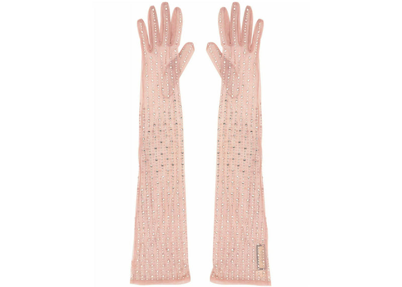 Gucci Long Crystal Embellished Mesh Gloves Cream