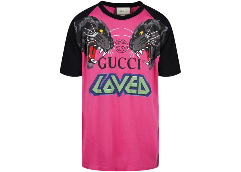 The Gucci Loved Tiger Print Crewneck Bright Fuchsia/Black is now available at Side Kicks!