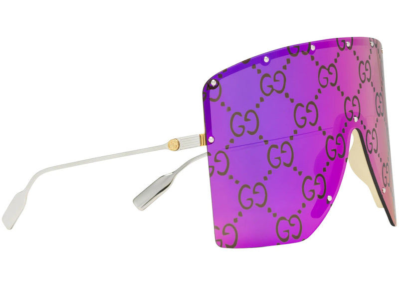 The Gucci Mask-Shaped Sunglasses Shiny Yellow Gold-Toned Metal Frame with Metal Studs (705386 I3330 8058) is now available at Side Kicks!