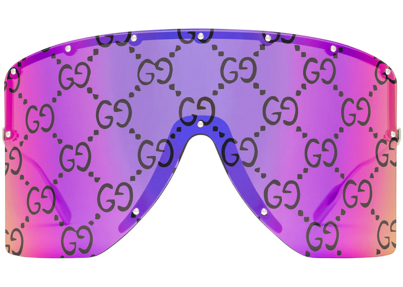 The Gucci Mask-Shaped Sunglasses Shiny Yellow Gold-Toned Metal Frame with Metal Studs (705386 I3330 8058) is now available at Side Kicks!...