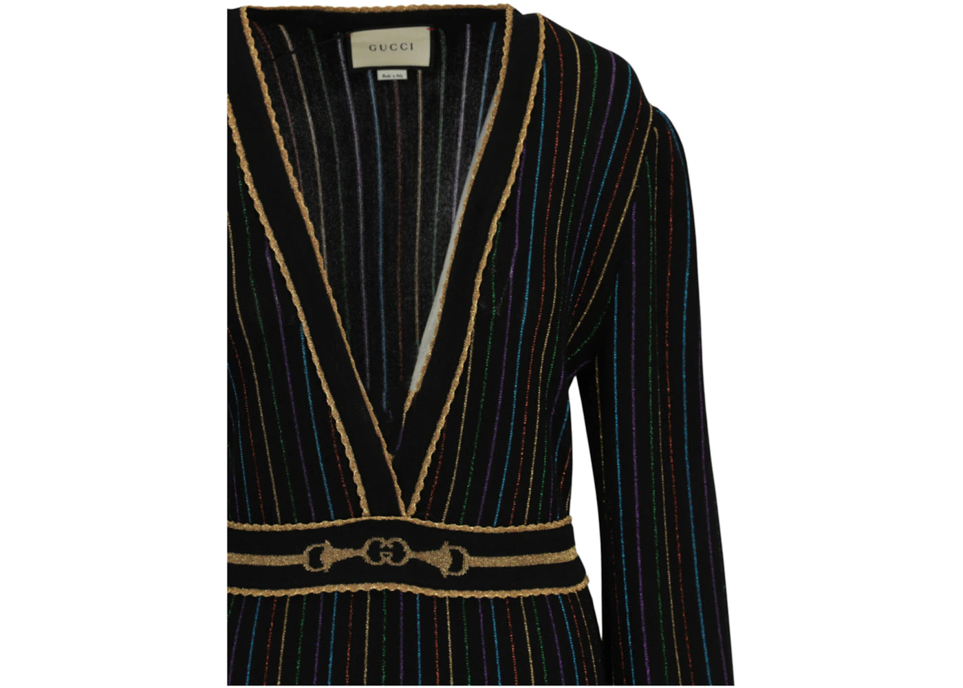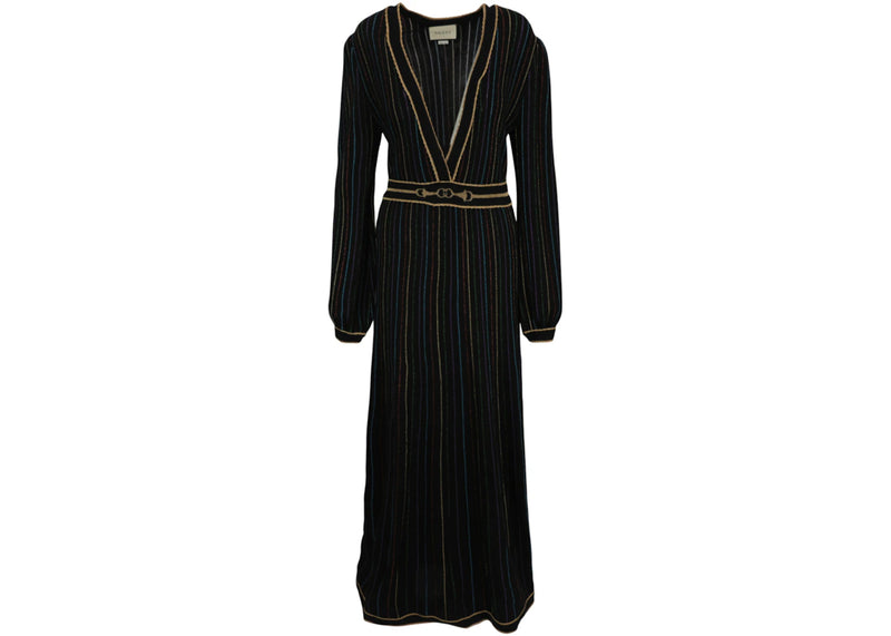 The Gucci Metallic Stripe Long Sleeve Maxi Dress Multi is now available at Side Kicks!