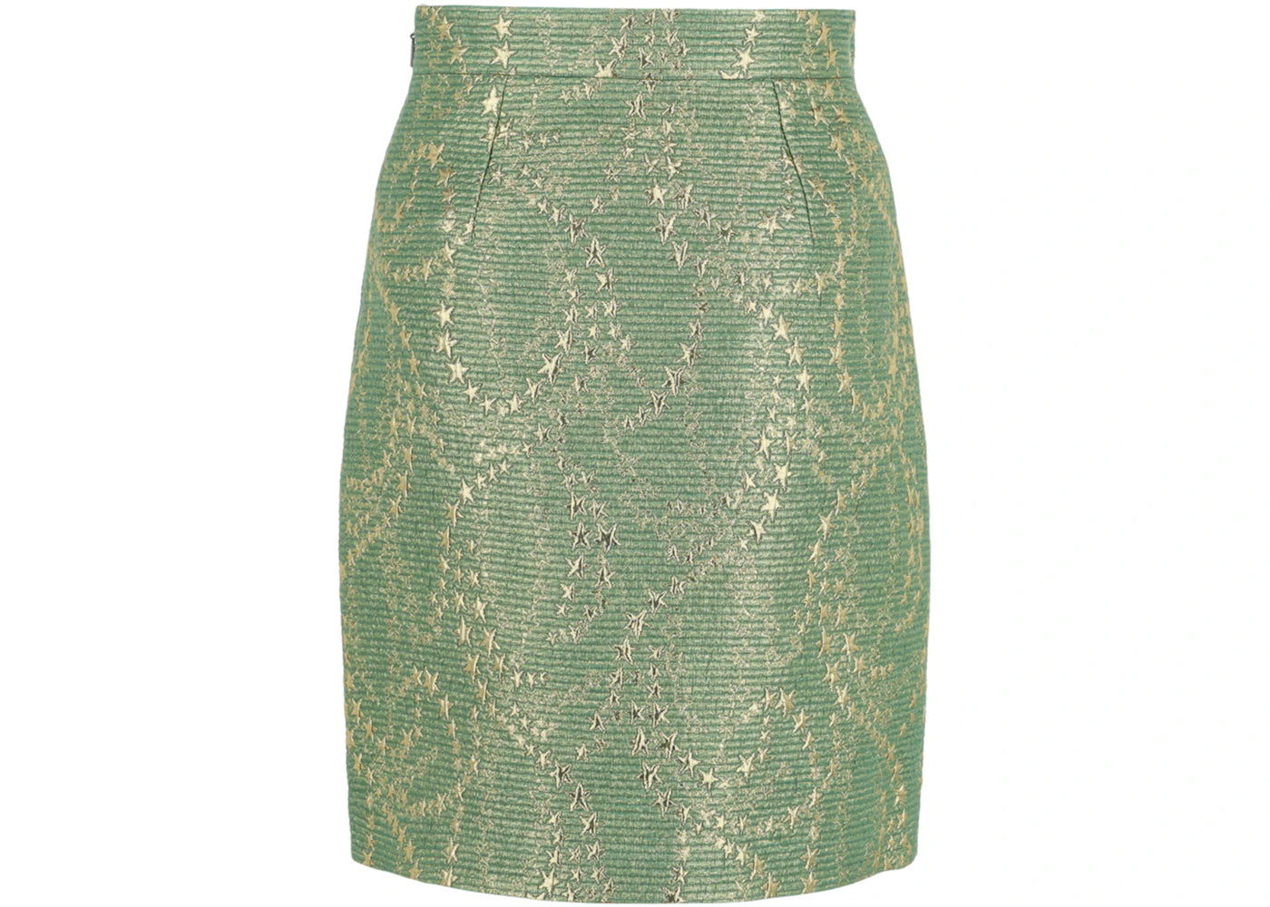 The Gucci Metallic Woven Skirt Green is now available at Side Kicks!