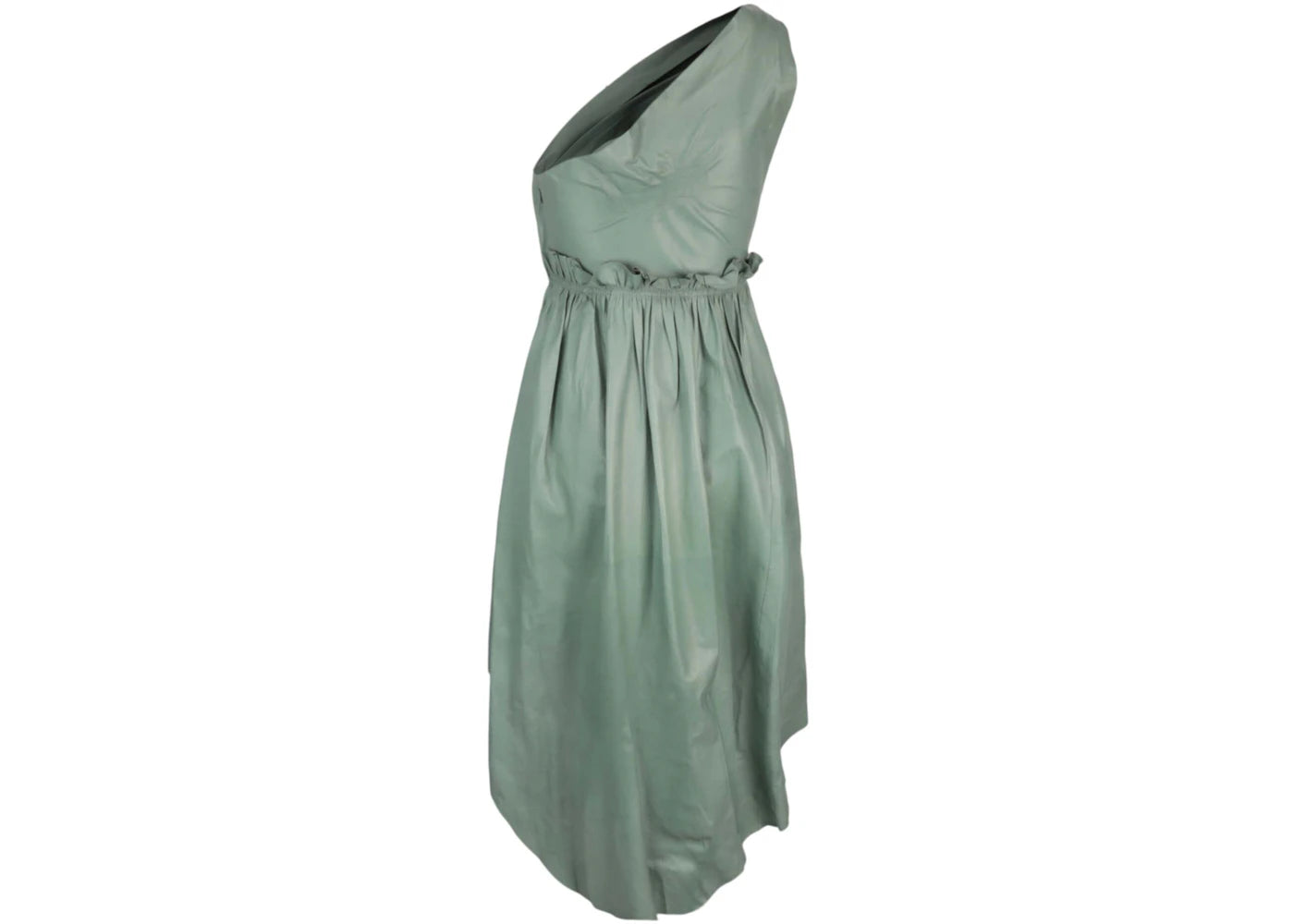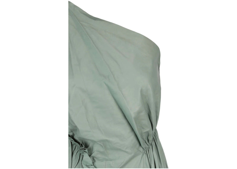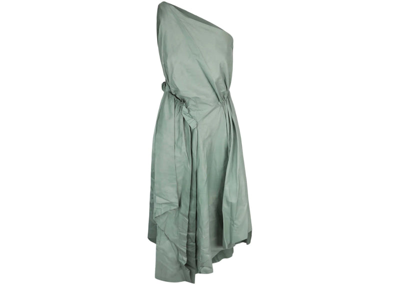 The Gucci One Shoulder Leather Maxi Dress Sage is now available at Side Kicks!