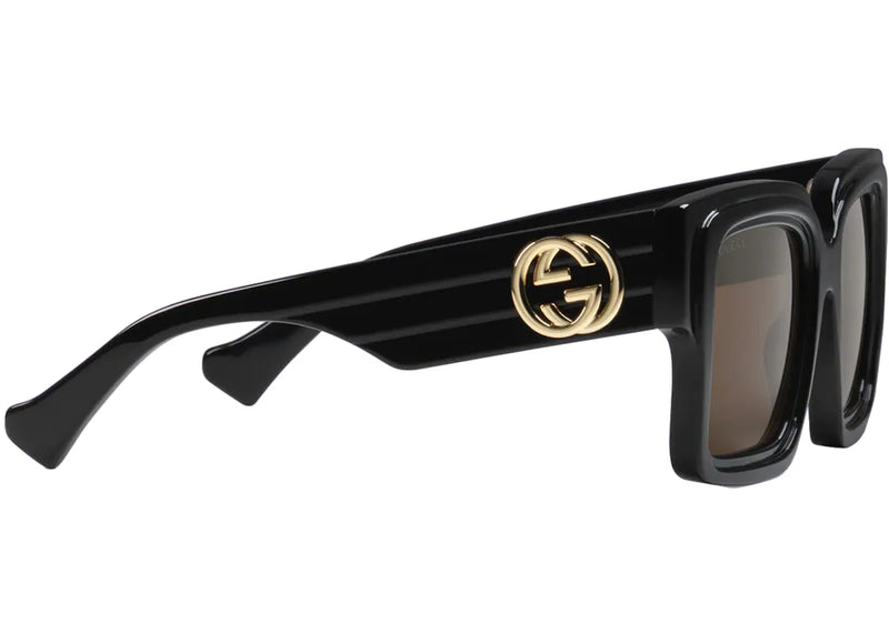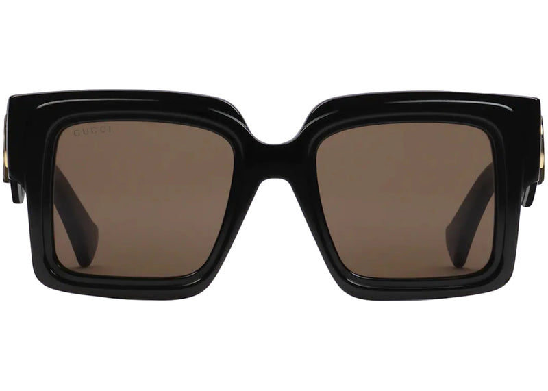 The Gucci Oversized Rectangular Sunglasses Shiny Black/Brown Lens (733349 J0740 1023) is now available at Side Kicks!