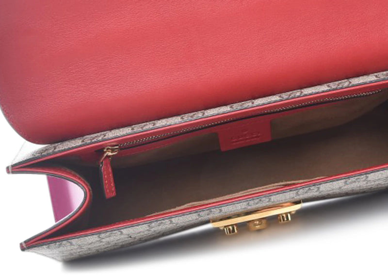 The Gucci Padlock Monogram GG Supreme Multicolor Medium Hibiscus Pink/Red/Brown is now available at Side Kicks!