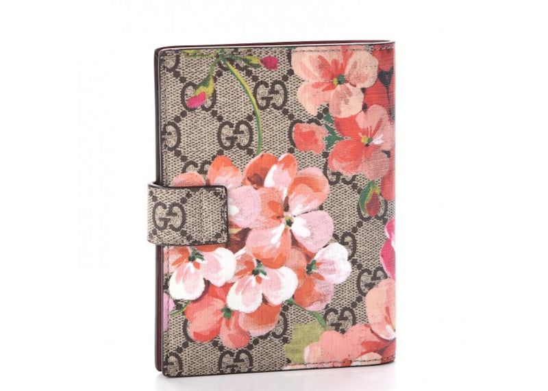 Gucci Passport Case Monogram GG Supreme Blooms Print Antique Rose