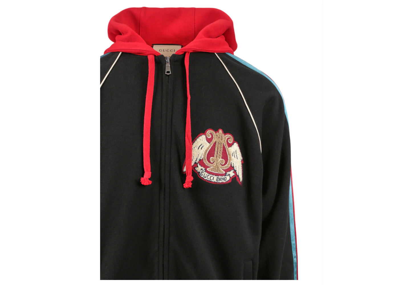 The Gucci Patch Zipped Cotton Hoodie Black/Red is now available at Side Kicks!