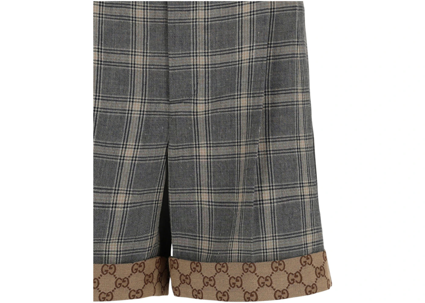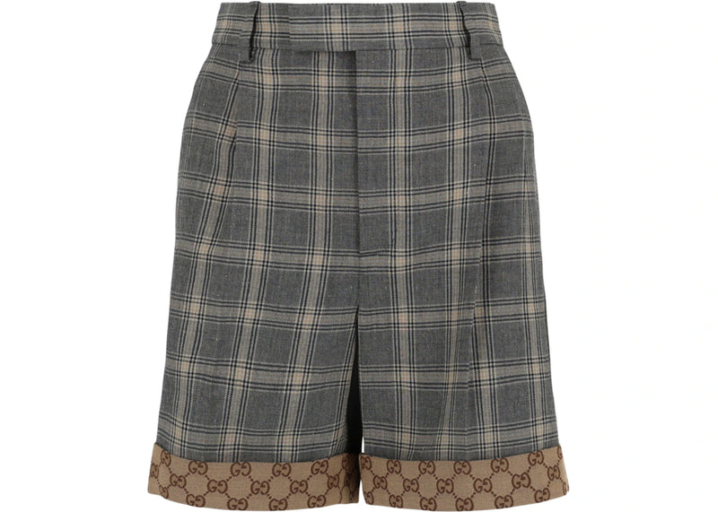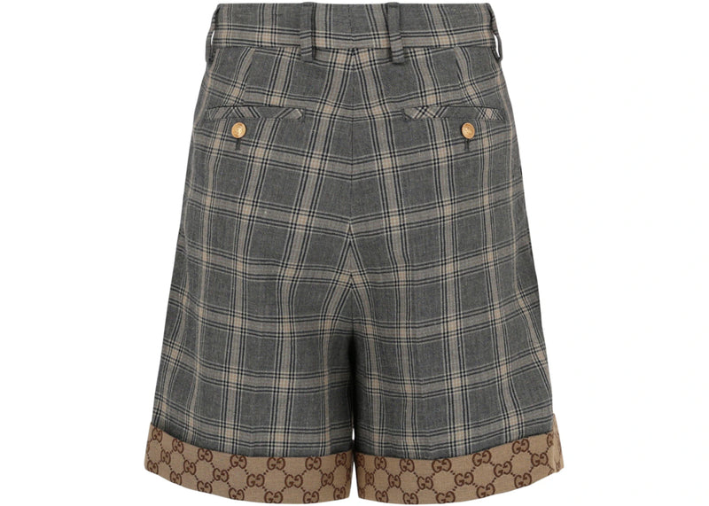 The Gucci Plaid Printed Linen and Wool Shorts Grey is now available at Side Kicks!