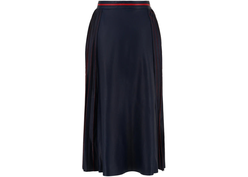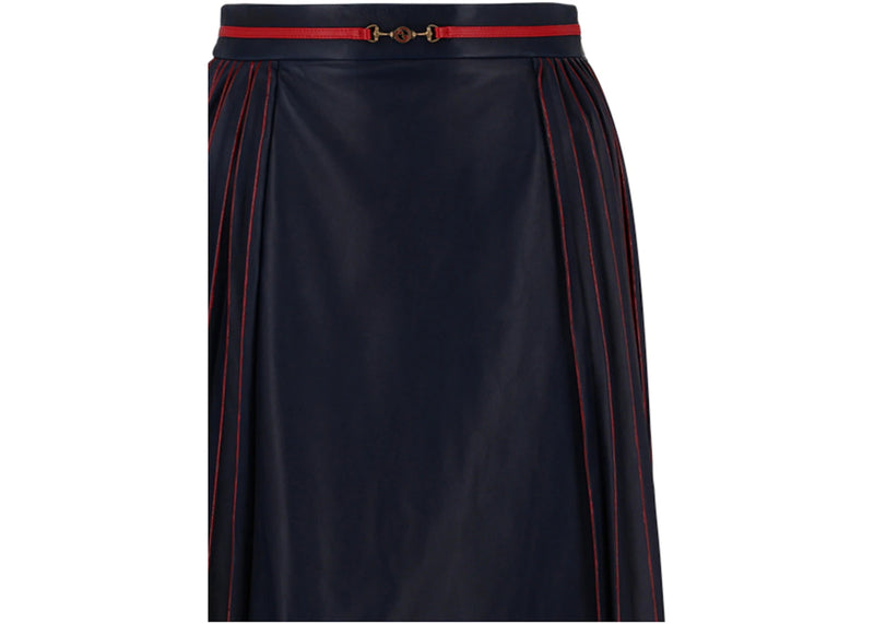 The Gucci Pleated Leather A-Line Midi Skirt Blue is now available at Side Kicks!