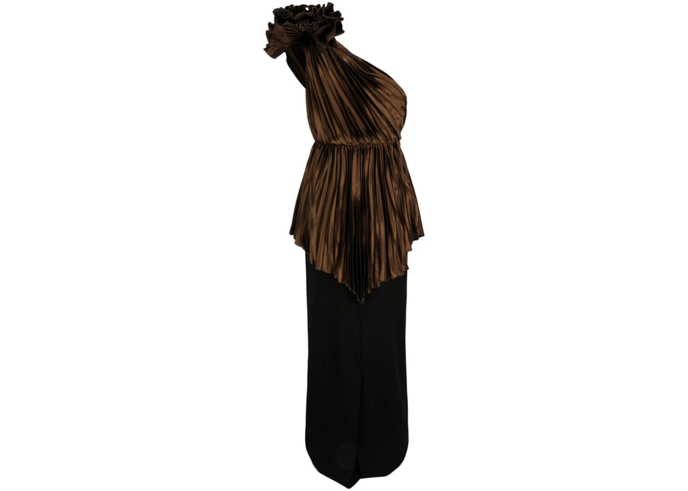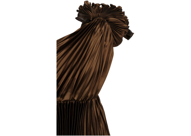 The Gucci Plisse One-Shoulder Gown Brown is now available at Side Kicks!