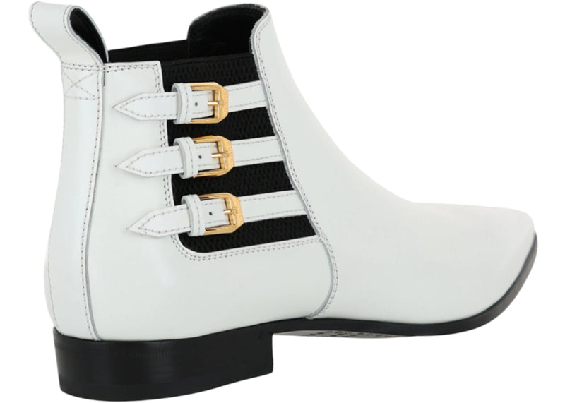 The Gucci Pointed Side Buckle Ankle Boots White (Women's) is now available at Side Kicks!