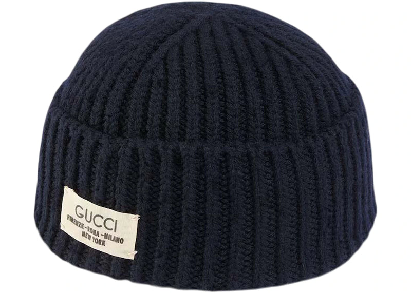 The Gucci Rib Wool Hat with Label Dark Blue is now available at Side Kicks!