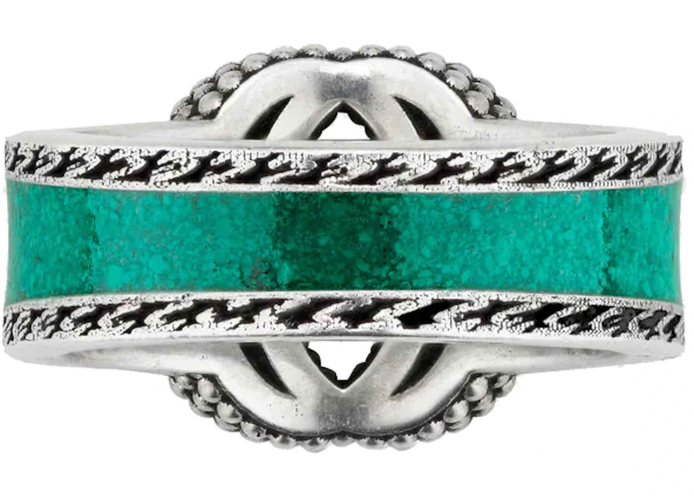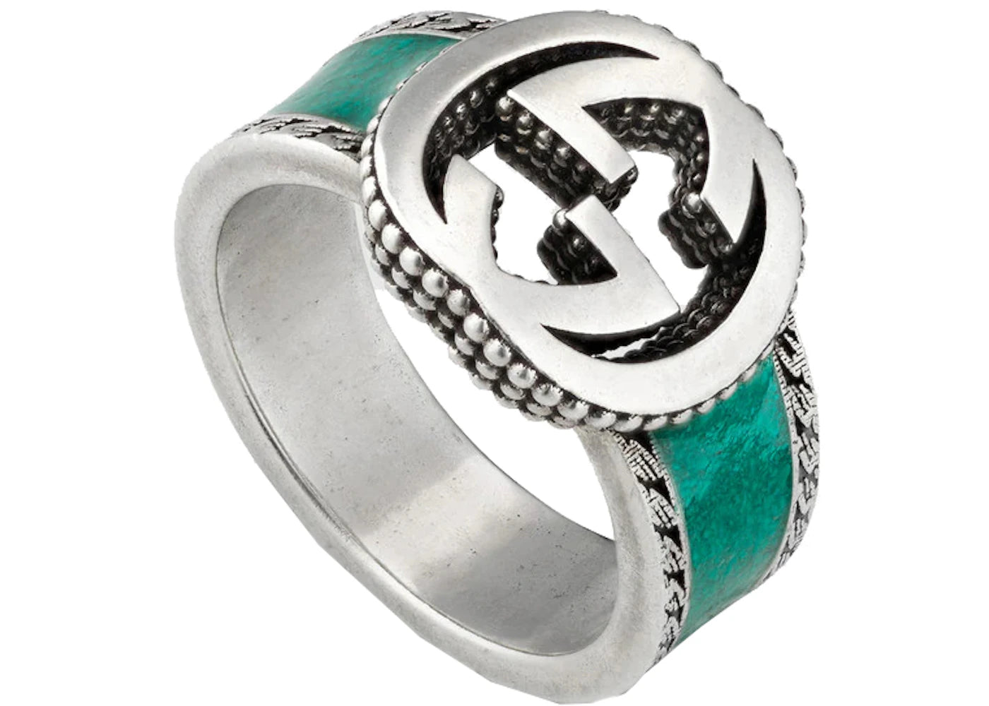 The Gucci Ring With Interlocking G Textured Trim Silver is now available at Side Kicks!