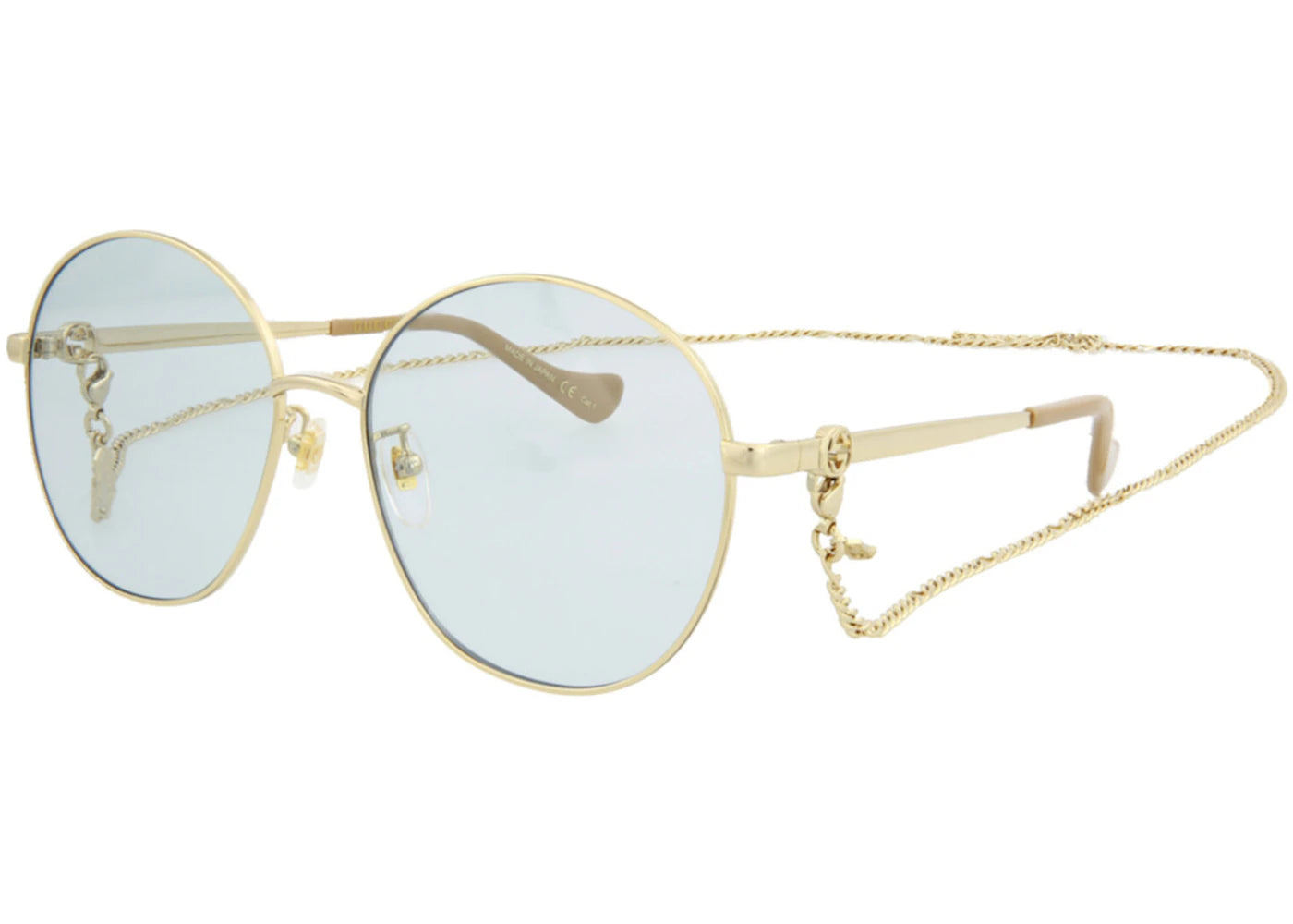 The Gucci Round-Frame Metal Sunglasses Gold/Light Blue (GG1090SA-30012970-004-70313) is now available at Side Kicks!
