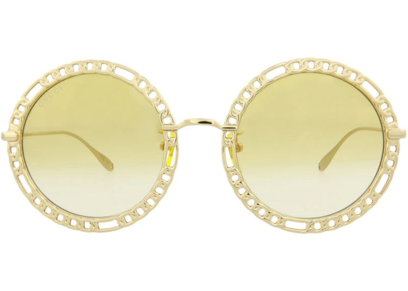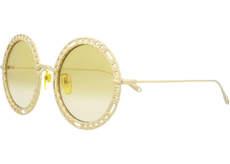 The Gucci Round Oval Sunglasses Gold/Gold/Yellow (GG1113S-30013070-001) is now available at Side Kicks!