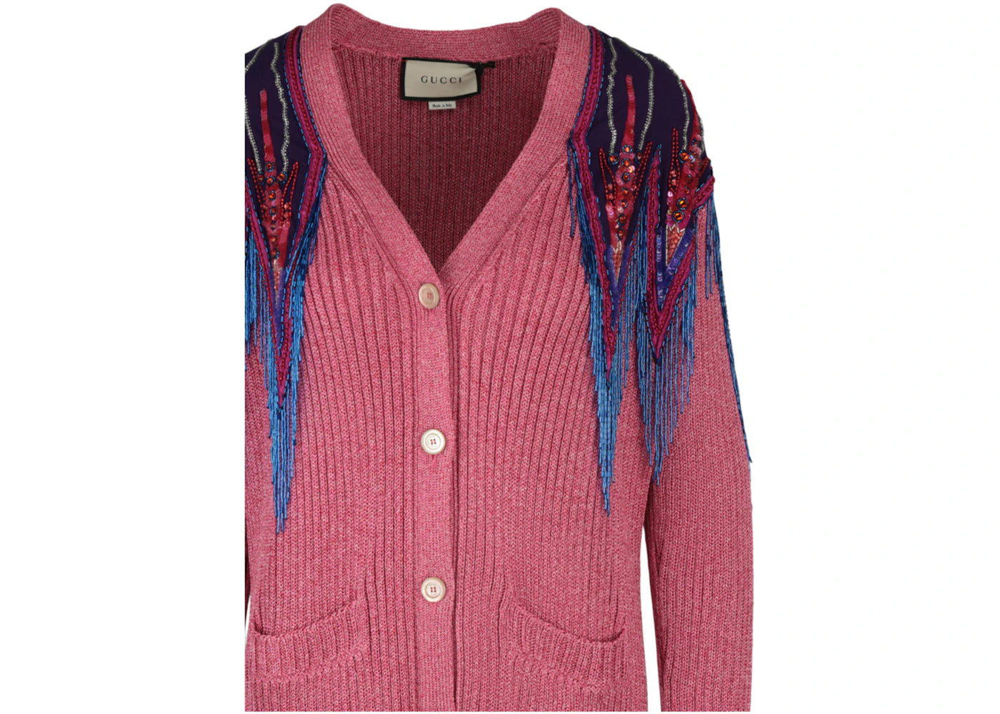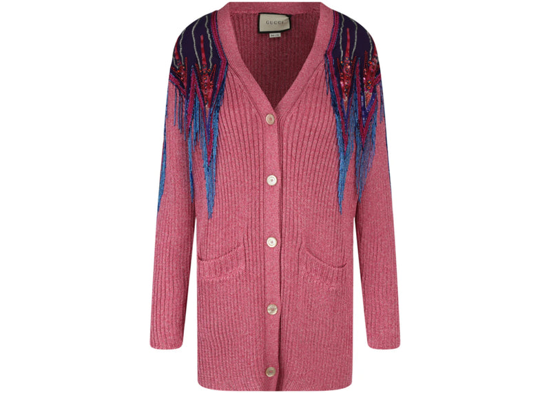 The Gucci Sequin And Fringe Cardigan Pink is now available at Side Kicks!