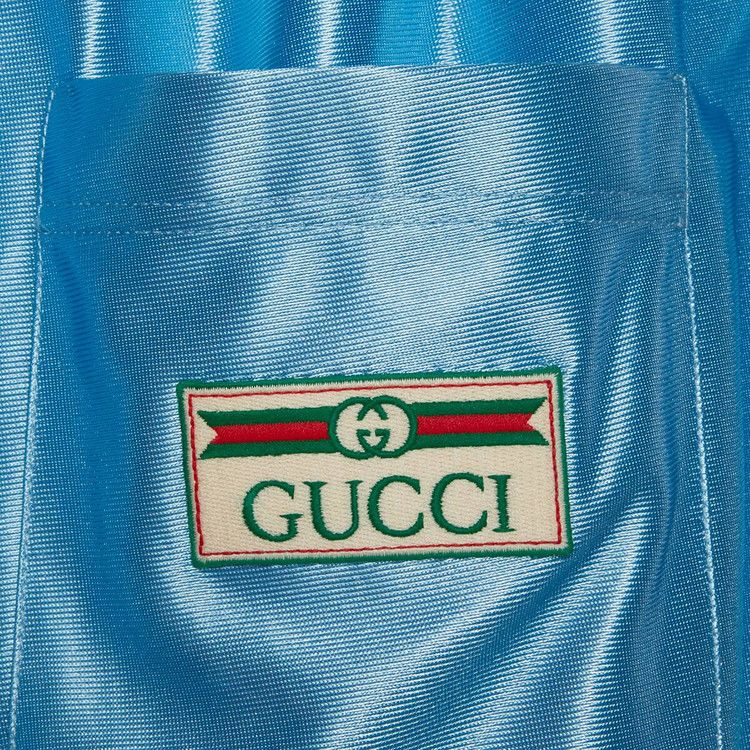The Gucci Shiny Jersey Jogging Pant With Web Light Blue is now available at Side Kicks!