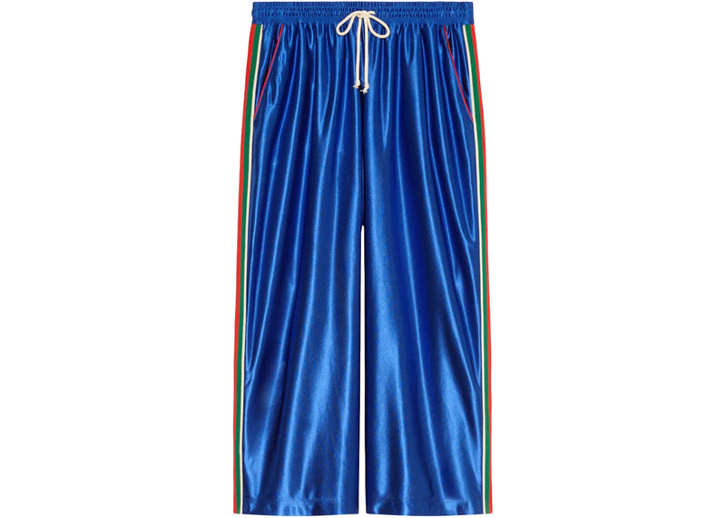 The Gucci Shiny Jersey Pant With Web Royal Blue is now available at Side Kicks!