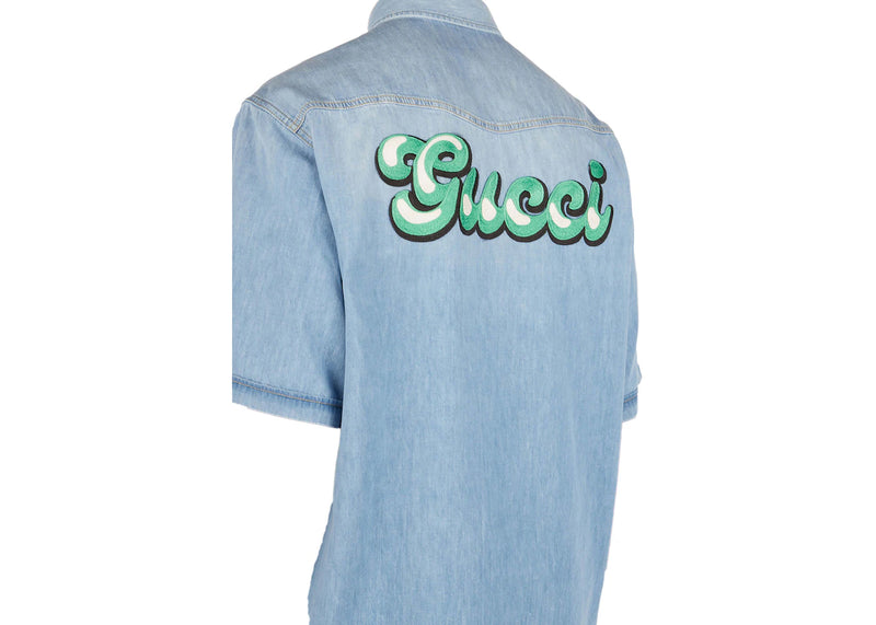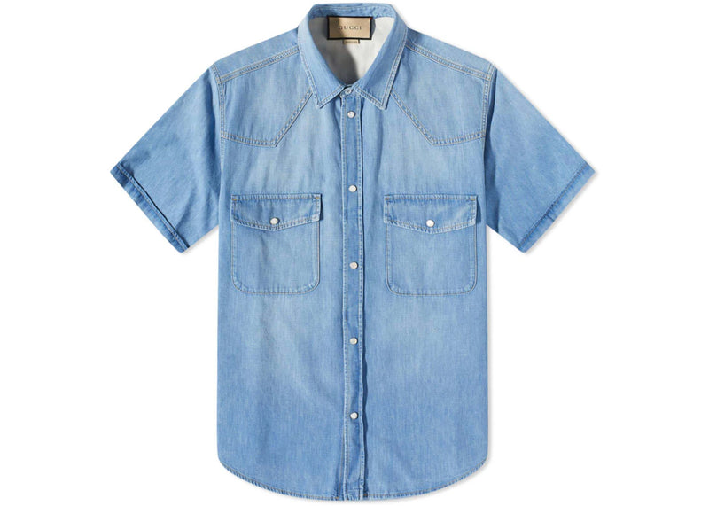 The Gucci Short Sleeve Denim Shirt Blue is now available at Side Kicks!