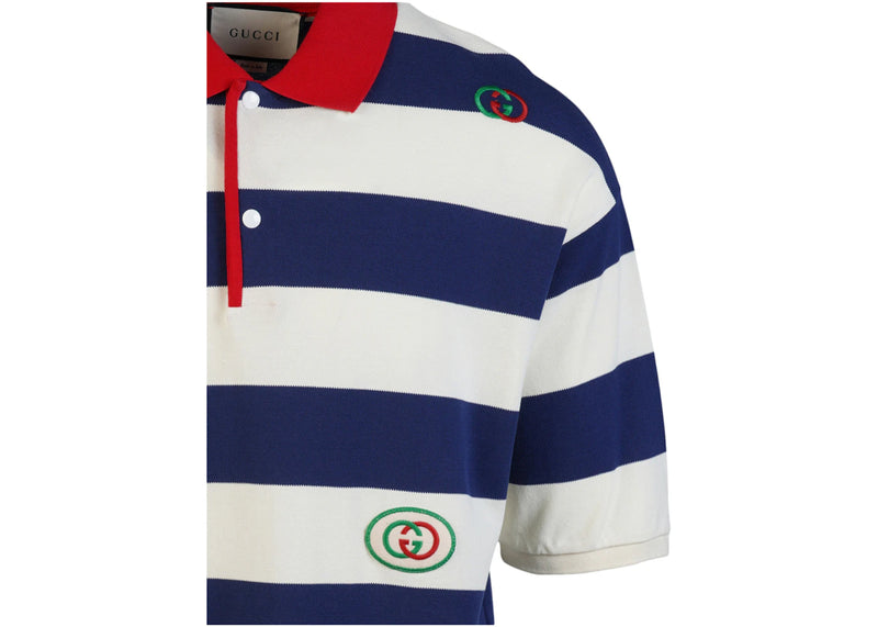 The Gucci Short Sleeve Striped Polo Ink Milk/Navy is now available at Side Kicks!